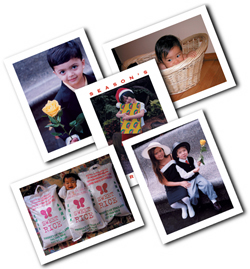 This packet of 10 cards contains 2 cards of each (versed and blank) of "Boy with Yellow Rose", "Basket Baby", "Little Santa", "Rice Baby" and "Friendship".