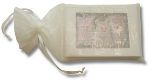 These cards are available with inside verse/greeting or as blank cards. All cards are 7" x 5" and come with matching envelopes. They can be purchased individually or in a set of 10 for $14.99 or in a special gift set of 12 cards in an elegant sheer organza bag for $16.99.